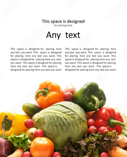 The image is on a white background. Photo about a huge pile of fresh and tasty fruits and vegetables.