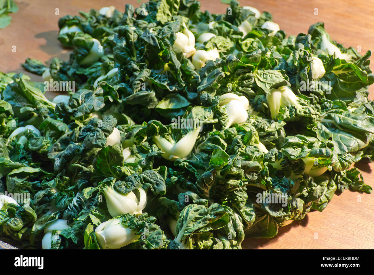A Huge Pile Of Organic Bok Choy At An Asian Market Stock